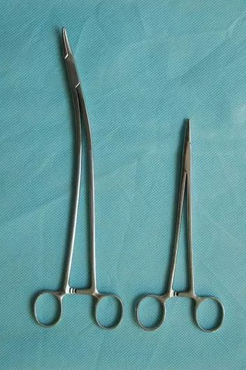 有不同长度及直弯之分,用于夹持缝针、协助缝线打结。
